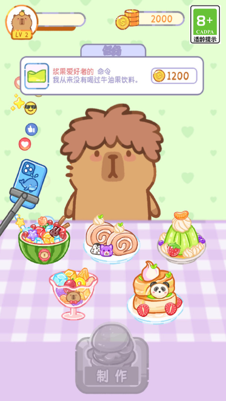 2、解锁各式各样的美食道具与特效,成就卡皮巴拉界的顶级吃播明星。
