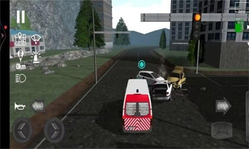 1、游戏开局从医院出发,玩家需操控救护车,规划合理路线前往指定救援地点,避开沿途障碍,确保快速抵达。