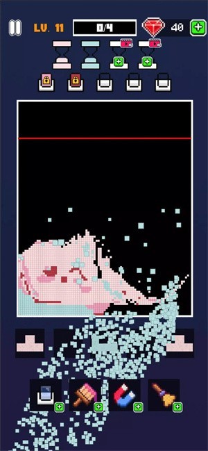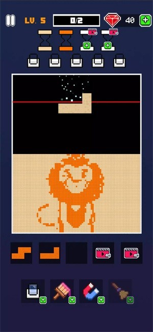 3、沙地方块互动。玩家需在网格化沙地中操作彩色方块,当同色方块与沙粒接触时,会自然融入沙层并触发爆炸效果。