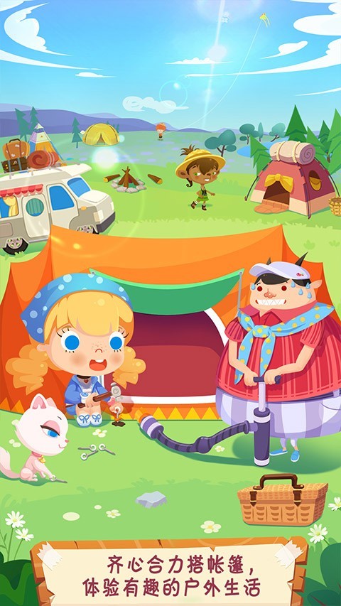 1、打开糖糖郊游记游戏,玩家点击帐篷按钮即可进入搭帐篷游戏页面;