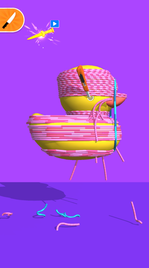 畅玩大挑战是一个非常解压的休闲小游戏,游戏提供的物体被绑上了海量的皮筋,而玩家需要使用小刀进行切割,让所有的皮筋都脱落,过程非常的解压,提供的切割声音也很清脆,能帮助大家很好的放松身心,游戏的操作非常简单,还有不同的玩法等你体验!