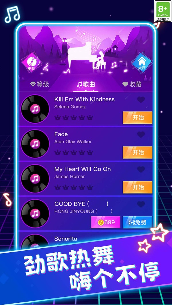 3、完成从新手到高手的关卡挑战,最终登上演奏大师的荣耀榜单。