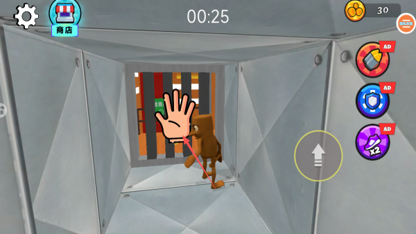 2、在可交互物体前会出现提示图标,点击手掌按钮即可触发开门等操作。