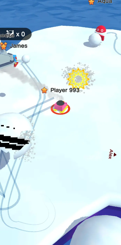 滚雪球,打雪仗;雪球滚大了把对方打飞!