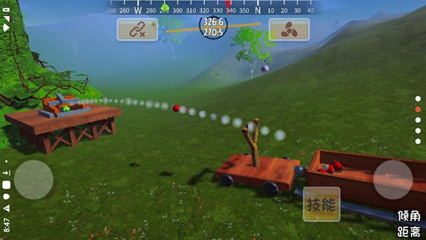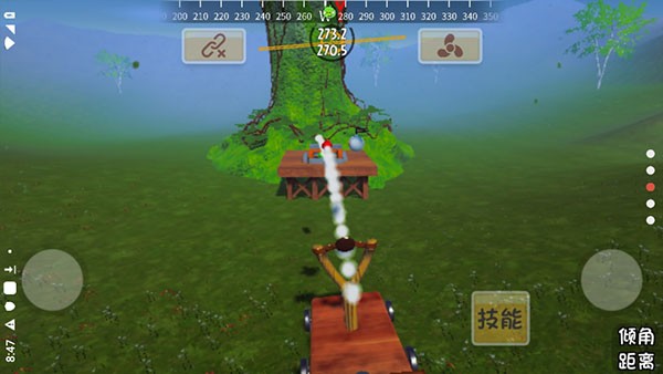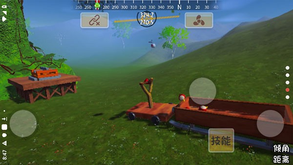 2、左边的按钮是用来控制弹弓车的,前后左右转动可以控制弹弓移动,转换不同的视角。