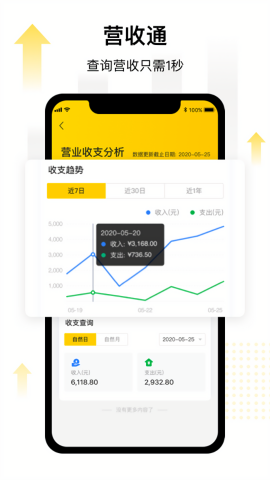 2、登陆后进入首页,用户可以查看业务实际情况,了解自己的店铺当天的收支。