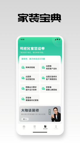量房现场,业务员通过软件和业主可视化沟通他家的户型、布局、风格等需求,即时查看效果,和其他装修公司形成差异化竞争,获取业主信任