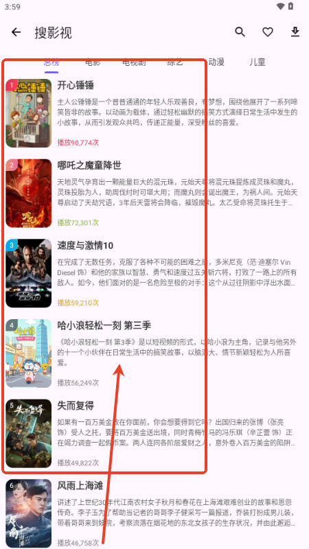 2、进入以后就可以看到影视排行;