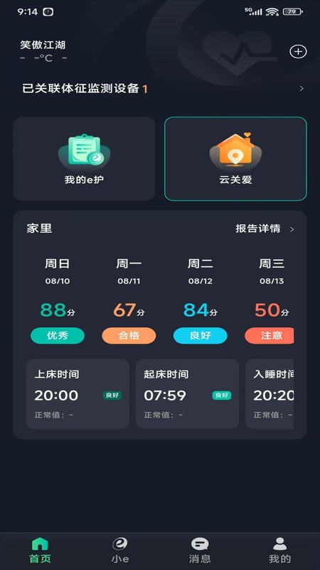 4、速配成功以后,就能在小e页面了解睡眠监测数据,并且同步分析。