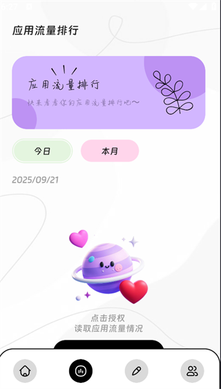 3、查看当天及每月应用软件流量使用排行,需开启相关权限。