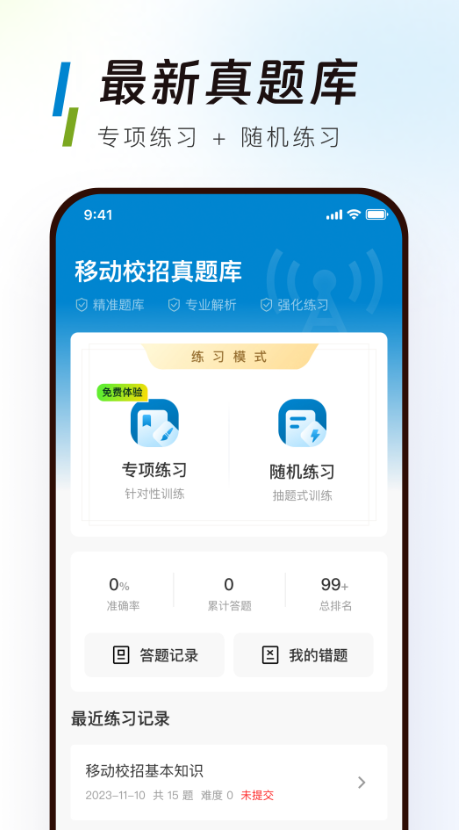 移动校招真题库app是一款专业的备考应用,汇集各类校招笔试题目。软件提供顺序练习、错题集和刷题记录功能,帮助考生系统性的进行复习。