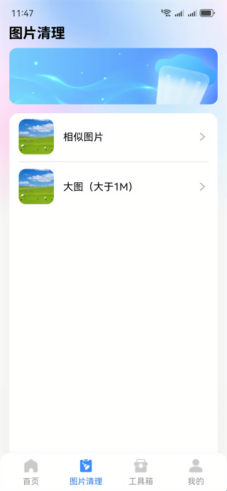 3、支持图片清理,手机中相似的图片和大图都可以进行清理;