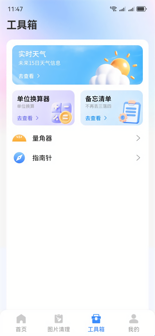 4、提供工具箱,包含天气、单位换算、备忘清单等实用小工具。