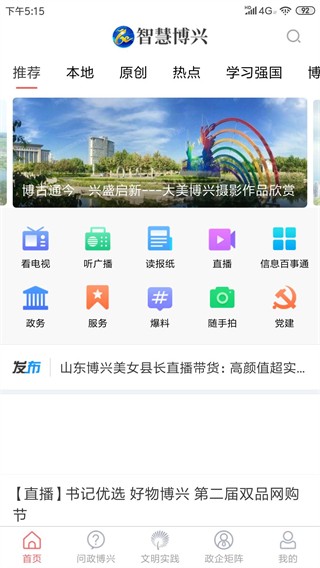 2、智慧博兴汇聚了博兴电视台、各大卫视同步直播,让您随时都可以第一时间了解当地的各种信息;