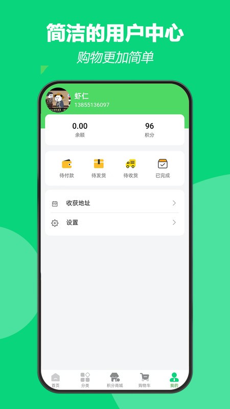 5、在我的页面,则提供了登录功能,可以浏览到账户和积分余额,还能同步查看订单。