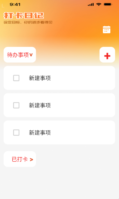 3、之后就可在“打卡日记”界面中点击右上方的“日历图标”按钮进行下一步。