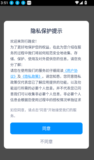 1、首先打开应用阅读完“隐私保护提示”后点击“同意”按钮进入app。