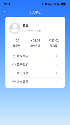 5、在个人中心就能查看信用分、账户余额等信息,还能直接在线提现;