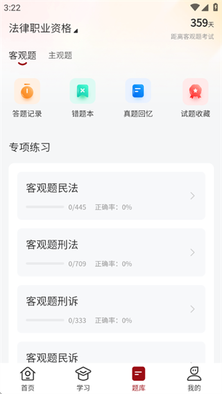 1、汇聚海量法考题库,客观题主观题全覆盖,随时开启练习,备考更高效。