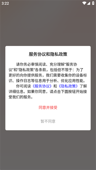 1、阅读服务协议和隐私政策之后点击同意并接受;