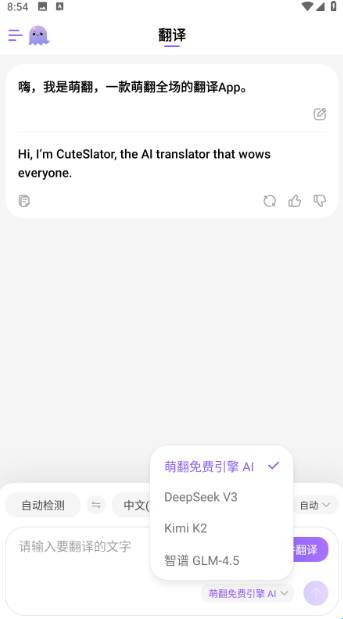 2、用户可以切换翻译引擎。