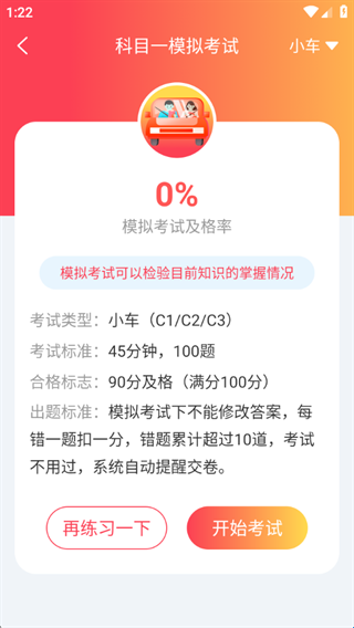 2、提供科目一到科目四的题目,可以选择不同的模式刷题;