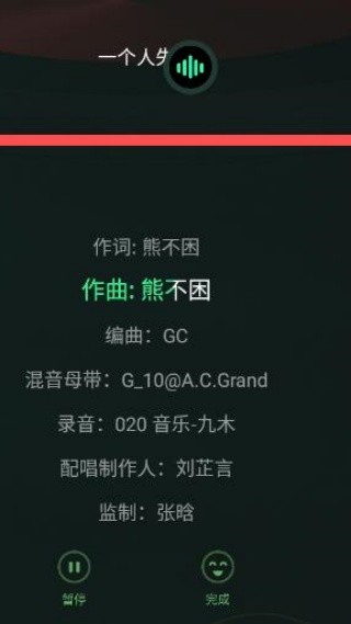 4、歌曲演唱结束,点击完成,系统就会提供试听服务,看看是否满意,支持重录和保存两个选项。