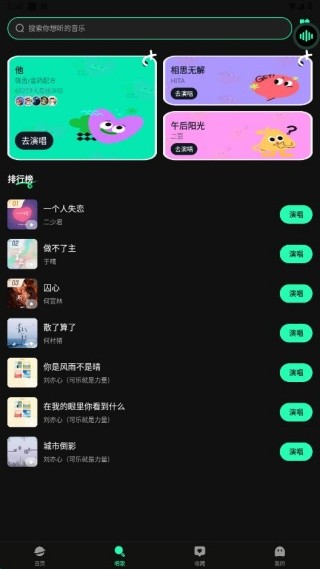 1、安装app,进入唱歌页面,可以查看到丰富的演唱歌曲信息。