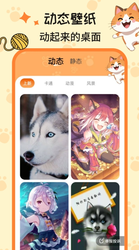 2、点击顶部的动/静态可以进行切换壁纸分类。
