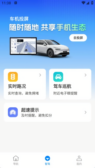 欢迎体验智驾级导航app!这是一个全新上线的地图导航软件,里面提供的导航功能非常强大,只要输入目的地就能根据实时路况智能规划路线,同时配备多种出行方式,满足不同用户的使用需求。最可的是软件支持车机投屏哦,轻松共享手机最新动态。