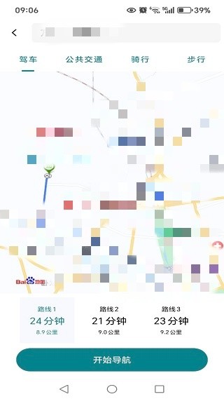 3、根据我们提交目的地信息,结合路况得出三条线路,随你选择。