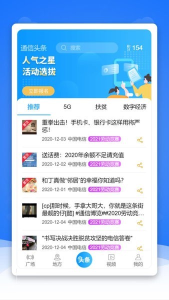 中国电信通信头条app(原名:通信头条)为大家提供了最新、最全的电信行业资讯,需要的用户可以随时来这进行阅读。在这里,你不仅可以得到全面的企业动态、行业资讯,还可以查看和检索自己需要的内容,提高搜索信息的效率。还可以积累积分,到最后拿去抽奖。