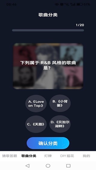 2、歌曲分类页面,所展示的题目则和题目类型相关,难度较大。