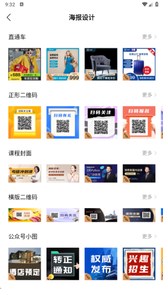 2、点击海报设计下面的进入,进入后即可看到很多不同类型的模板,根据需求进行选择制作即可;
