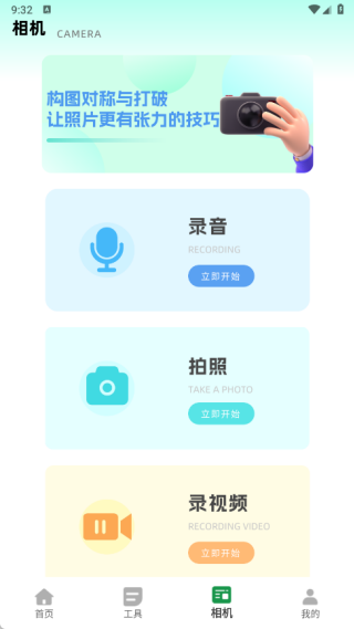 4、在相机页面中可以进行录音、拍照以及录等操作。