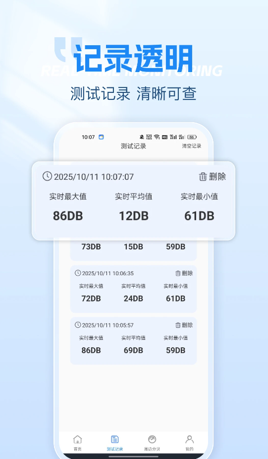 支持历史查看和对比分析,方便用户跟踪不同时间的分贝噪声。