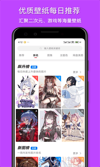支持通过输入动漫、游戏等关键词进行查找,便于用户迅速定位所需的壁纸资源,提升使用效率。