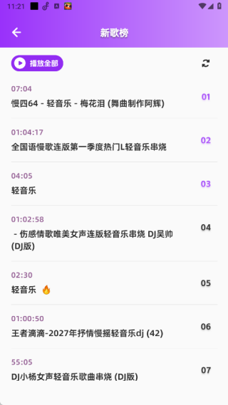 3、在新歌榜中可以了解各类好听的新歌,用户可以随时收听;