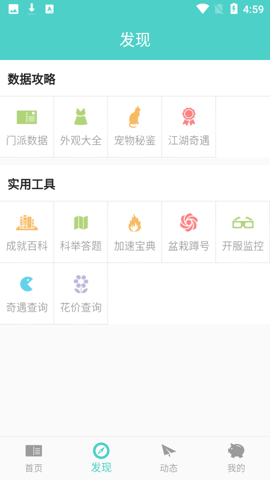 2.多种实用工具,汇集了配装器,成就百科,加速宝典,开服查询,科举查询,奇遇查询等等辅助功能