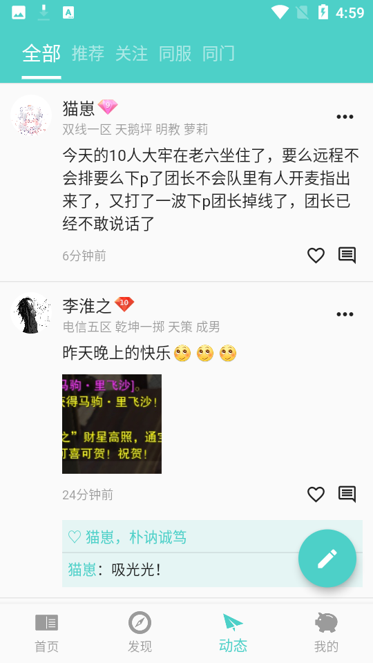 4.江湖动态,用户发布图文动态,分享自己的游戏经历及心情.