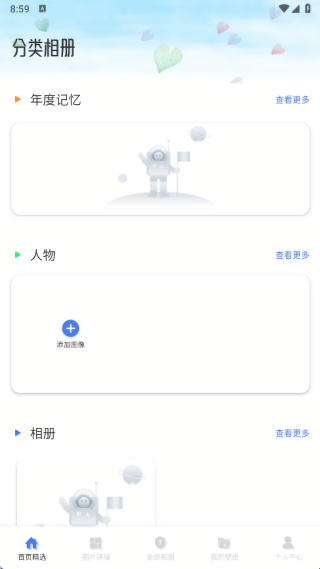 1、在首页中提供了年度记忆、人物和相机功能;