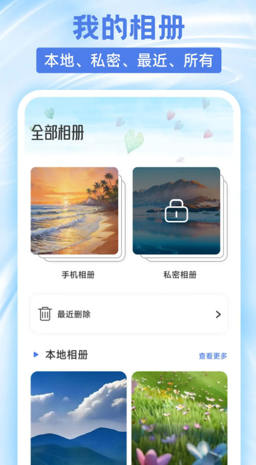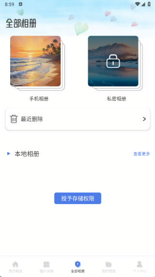 3、在全部相册页面中有手机相册、私密相册等信息;