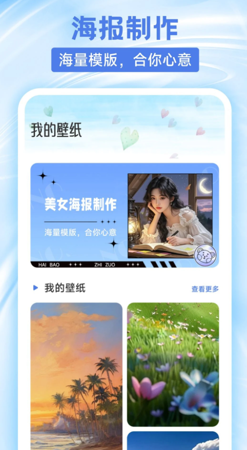 提供大量模板、按钮生成海报,以及壁纸制作,满足个性化需求。