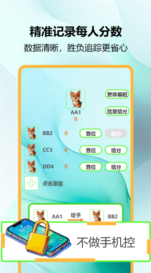 3、在计分页面中可以随时添加不同的人群,然后进行计分操作;