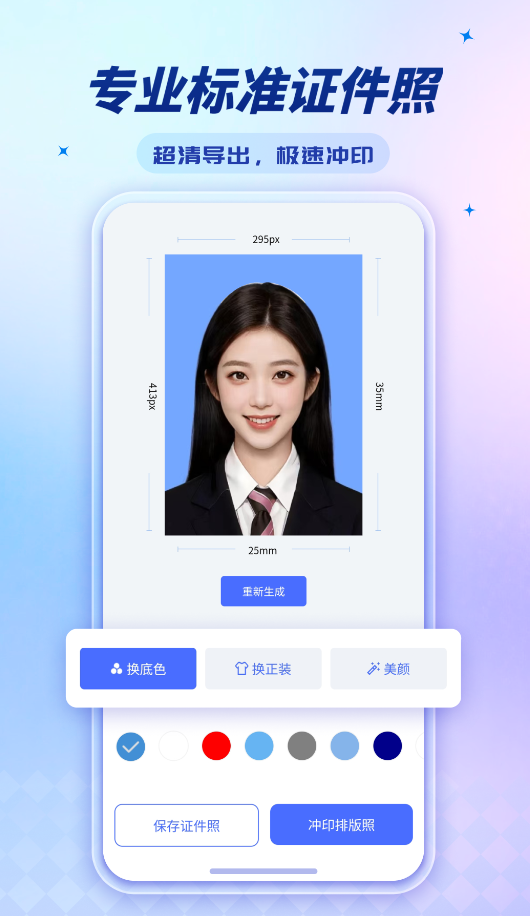 可以替换证件照的背景颜色,用户在这里可以获取不同的证件照背景颜色效果;