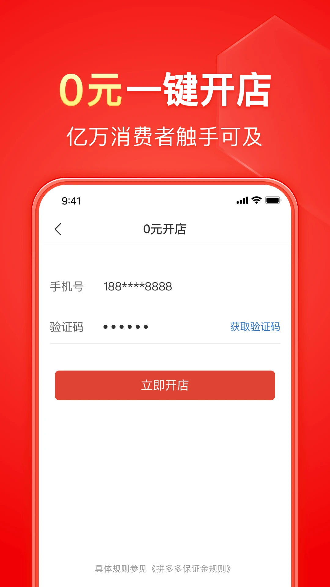 拼多多商家版是拼多多官方面向商家推出的手机端,你可以使用它来管理自己的店铺,查看货存,管理商品上架下架以及与顾客沟通,软件使用起来非常的方便,实时追踪订单情况,官方支持0保证金经营,手机注册一秒开店,每个人都能轻松当老板。