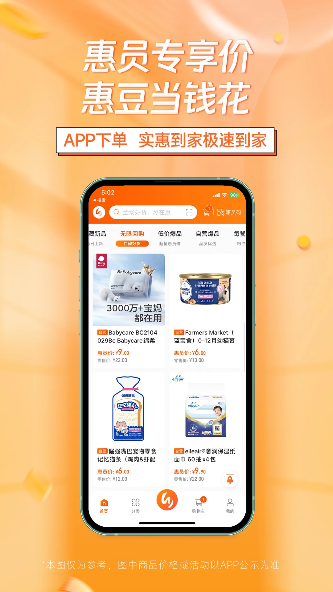 1.购物下单:会挑、好逛、真便宜,线上电商、线下购物中心品质相同,惠员价更优;