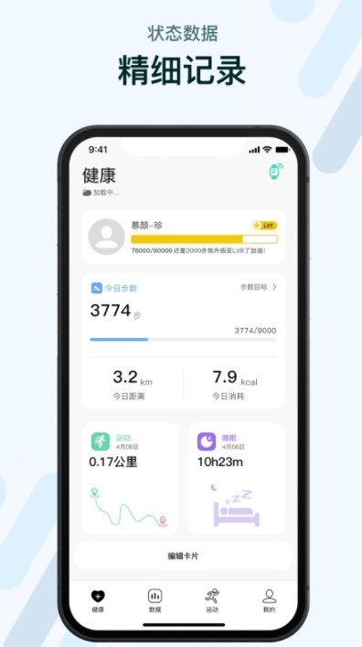1记录您的运动数据,计算目标是否达成,步数,距离,卡路里消耗等;