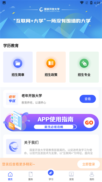可以在APP中完成注册,补充,录取,学习,考试,毕业和取证