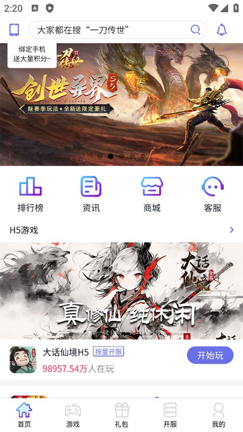 一款专门从事手游、H5游戏运营的游戏平台,平台上包含了许多非常热门的游戏资源,这些游戏游有《神仙道》、《盛世三国》、《凡人修真2》、《热血海贼王》、《大侠传》、《斗将魂》、《三国演义》、《蓬莱奇谭》、《三国魂》等多款火爆游戏。这些游戏往往在制作水平上表现的特别好,无论是画质、剧情演绎还是声音的捕捉,都是非常到位,广大玩家不仅可以在此挑选喜欢的游戏下载或在线游玩,还可以和其它玩家进行交流、切磋。另外,为了改善玩家在游戏中的体验,玩家朋友们可以在平台中领取相应游戏的福利礼包,让玩家能够在游戏初期即可获取诸多助力。